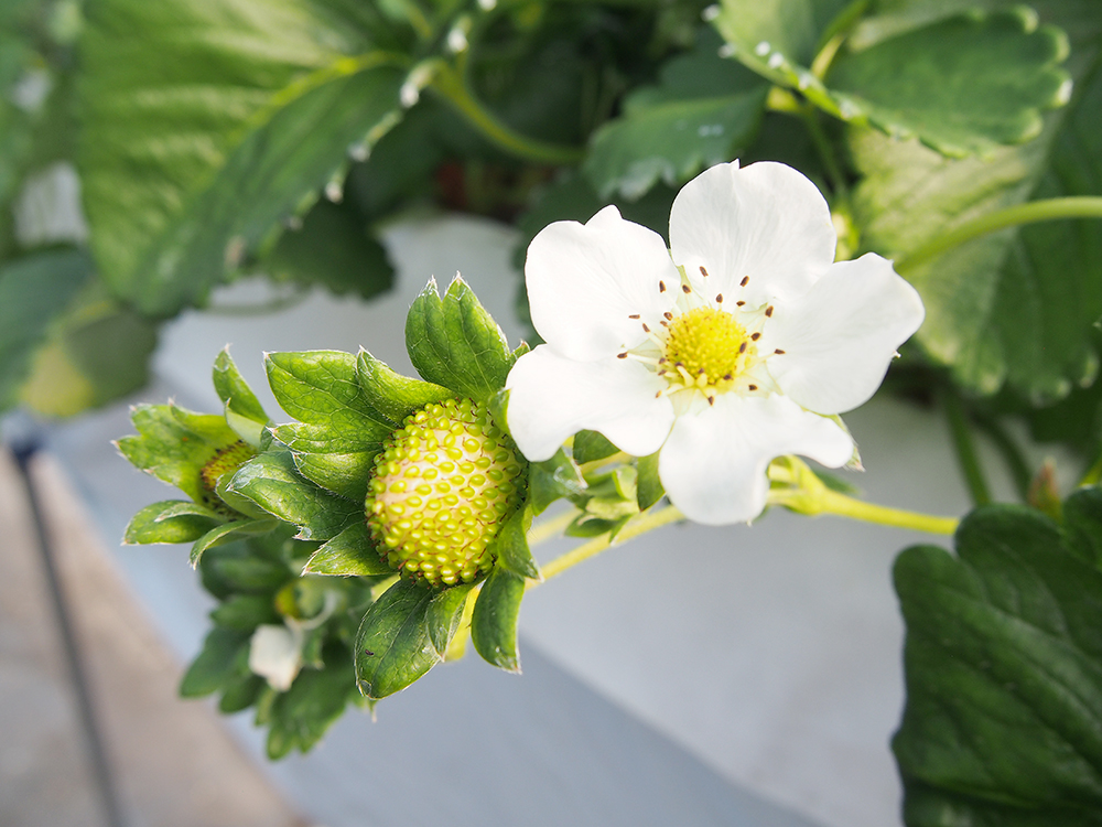 イチゴ欲が落ち着いてくると、苺にばっかりに合っていた焦点も、花に合わせる余裕が出てきます。